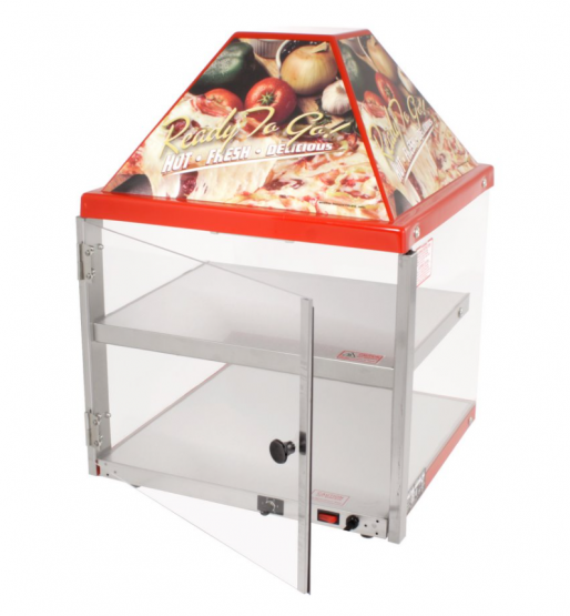 Even when space is limited, you can offer ready-to-serve pizza to your customers with this countertop pizza display. The cabinet holds two 16" pizzas, and features bottom heat that keeps crusts delightfully crisp and delectable. This item can also be used to keep baked goods and sandwiches warm and ready for purchase.