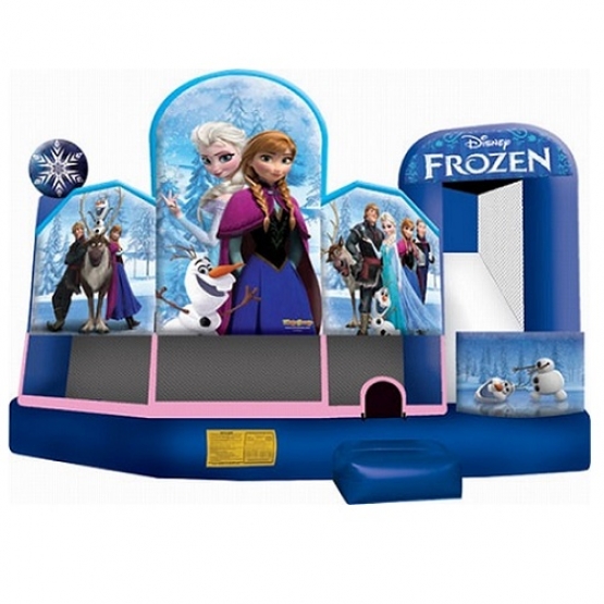 The 5-in-1 combo has a large interior jumping area which offers a basketball hoop and both log and pop-up obstacles. It also has a climb feature and a convenient exit slide for hours of active fun!