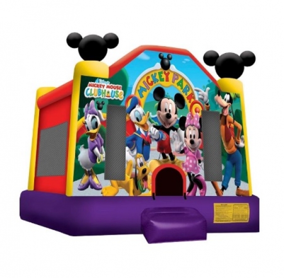 Let this bouncer inject your next party or event with a little club house fun, as Mickey and his pals invite everyone to the Mickey Mouse Club House! This jumper features Mickey, Minnie, Daffy, Daisy, Goofy and the Mickey Mouse's faithful pup, Pluto, perfect friends for kids to jump alongside all day! The Mickey Park bounce house is the perfect way to combine fun and healthy activity, and will add value to any Party Rental. This jumper has 360-degree mesh windows, so parents and spectators can have a clear view of all the fun.