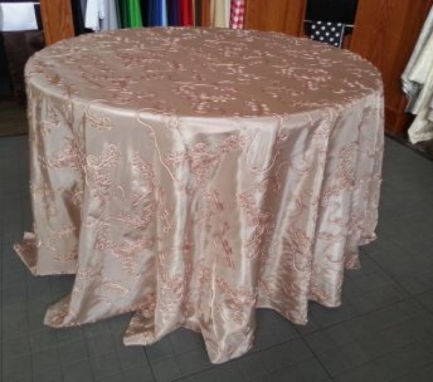 Table Cover - Designer, Nylon Taffeta Scroll, Champagne, 120" Round