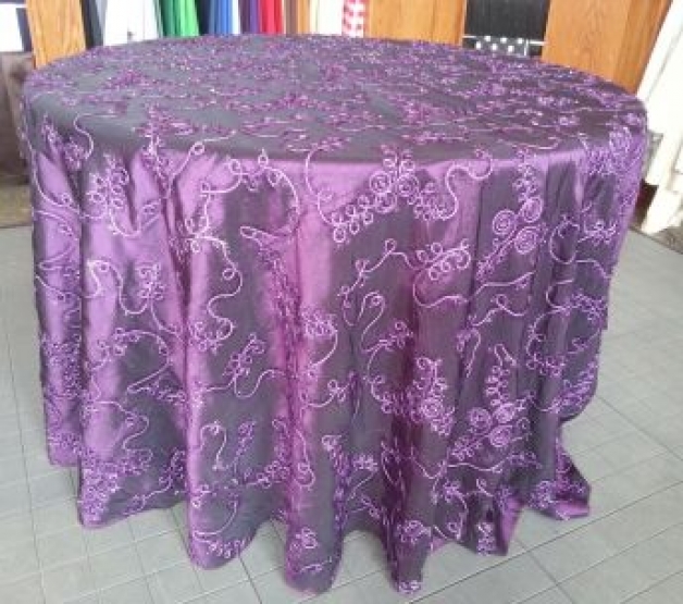 Table Cover - Designer, Nylon Taffeta Scroll, Purple, 120" Round